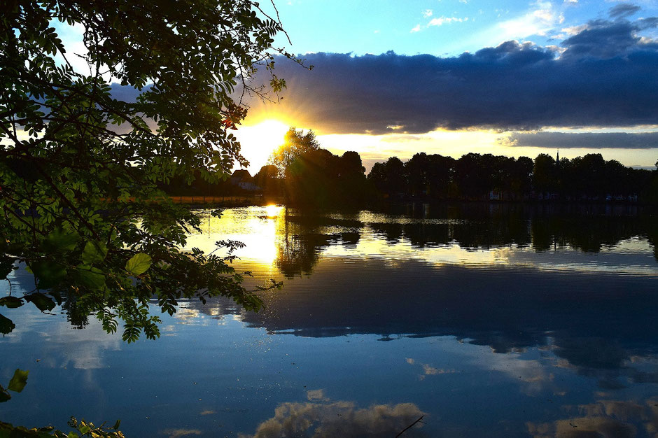 „In der letzten Woche war es abends so schön, dass ich mir immer wieder eine Runde um den Waagweiher gönnte. Dabei gelang an einem Abend dieses schöne Foto vom gegenüberliegenden Ufer zur Burgstraße hin.“